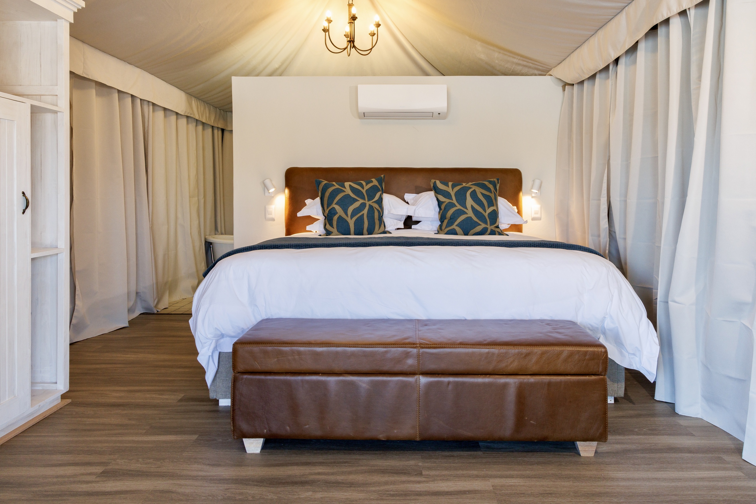 The Blesbok Tent is designed for comfort and calm, a retreat where nature and luxury meet. Inside, a plush super king bed, elegant décor, and carefully chosen amenities set the stage for deep relaxation.