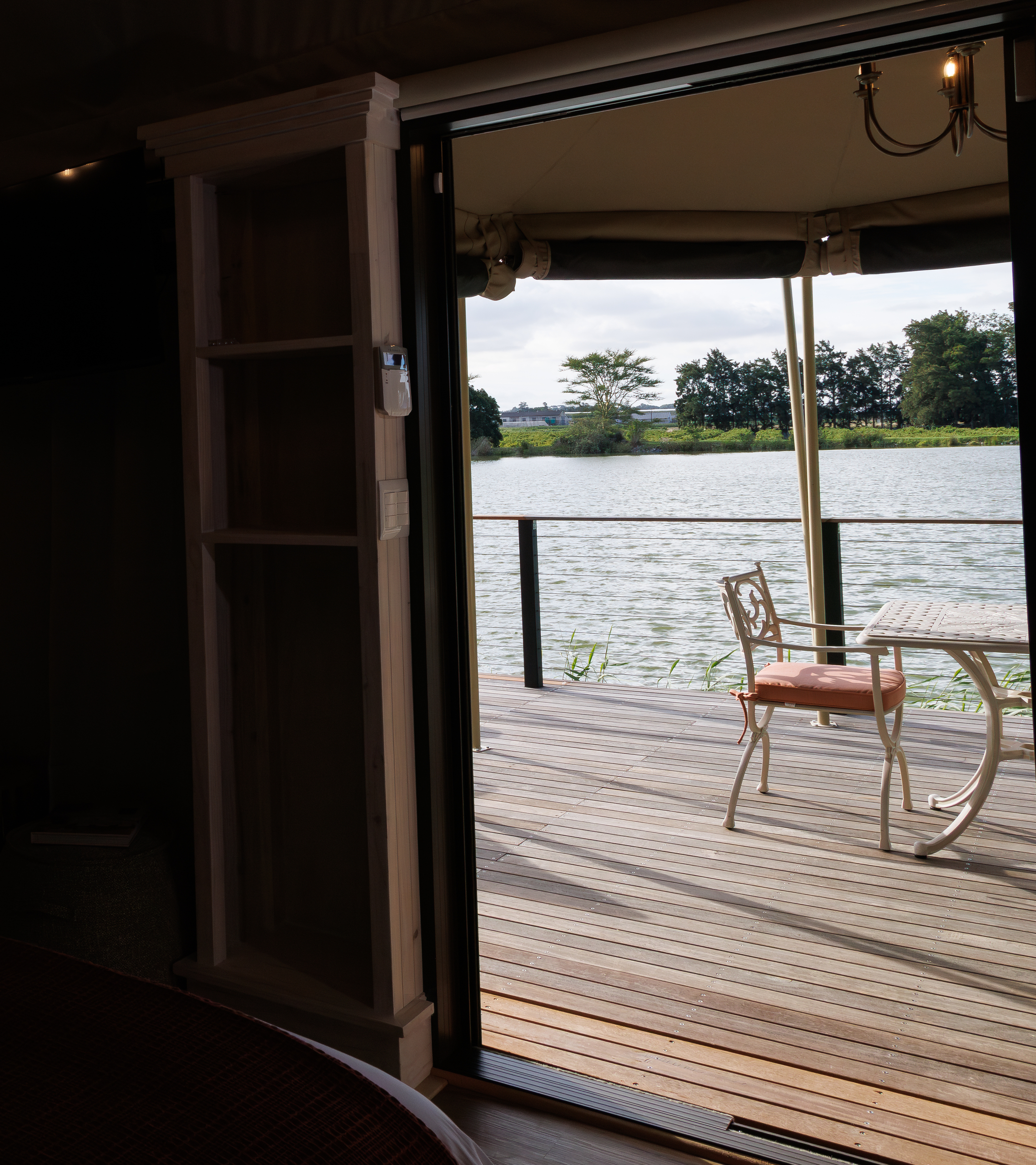 Unwind in this stylish lakeside glamping tent, where luxury meets the tranquillity of nature. Featuring a plush super king size bed, chic decor, and a private wood-fired hot tub, this retreat offers the perfect balance of comfort and outdoor adventure.