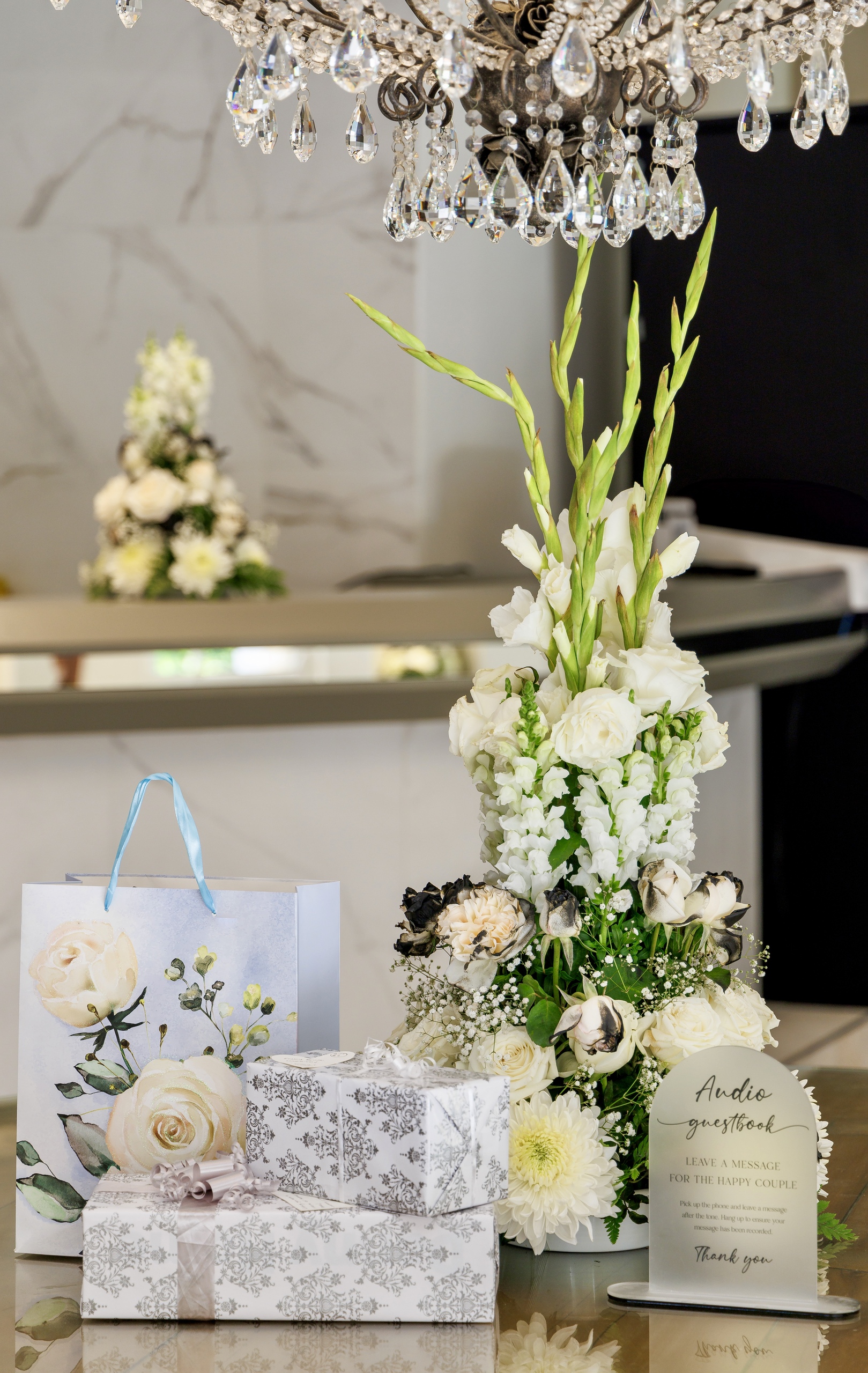 Surrounded by the beauty of the vineyards, the venue provided a unique and intimate backdrop for their celebration. The soft white, green, and gold theme and lush floral arrangements brought a natural elegance to the day.