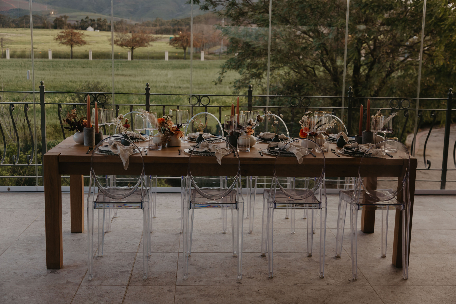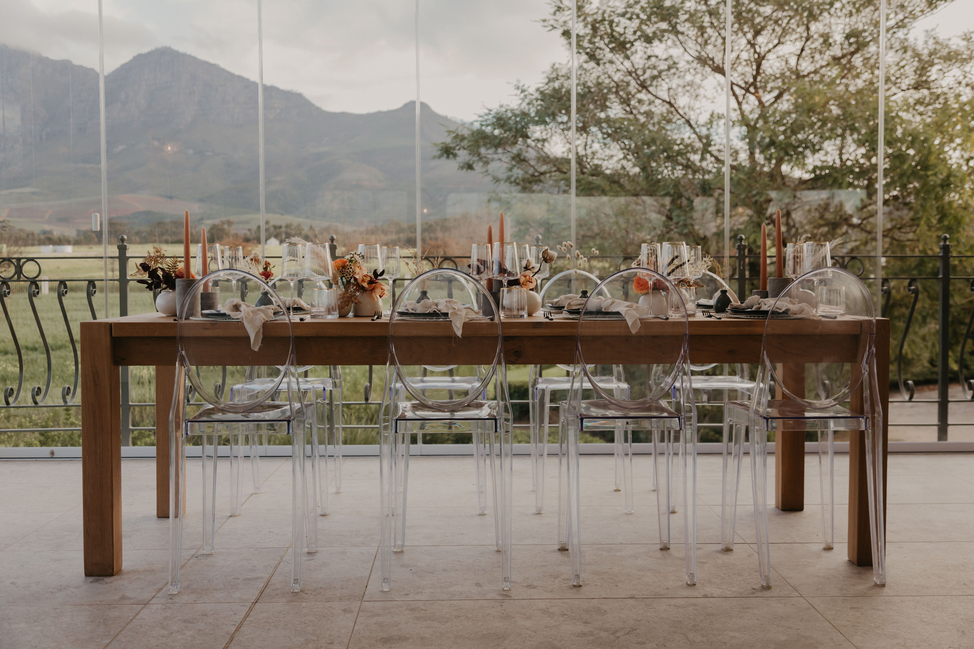Located in the heart of Franschhoek Valley, our venue is within a secure estate with ample parking and 24-hour manned security, including CCTV surveillance.